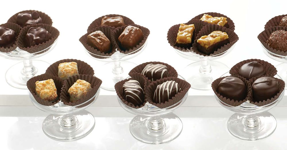 If you're looking for a mix of nutty, chewy, crunchy and soft centers, look no further! This assortment contains a selection of our customers' favorites*:Butterscotch Square, Caramel, Cocoanut, Dark Almond, Dark Butterchew, Dark Chocolate Butter, Dark Nougat, Dark Patties, Maple Walnut, Marzipan, Mayfair, Milk Almond, Milk Beverly, Milk Bordeaux™, Milk California Brittle, Milk Molasses Chips, Mini Peanut Square, Mocha, Normandie, Rum Nougat, Scotchmallow®, Vanilla Nut Cream, Walnut Square. *Replacements may be made depending on candy availability.
